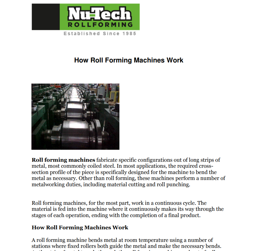 We stand among North America’s top-tier roll forming companies, collaborating with a diverse array of industries—from automotive, construction, and storage to military, transportation, electrical, mining, agriculture, forestry, petrochemicals, and beyond.